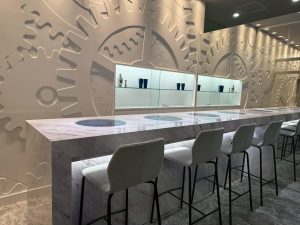 壁面近くには、バーカウンターのように商品を眺めながら、